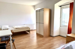 Es gibt auch 1 Zimmerwohnungen mit 1 Bett für 420,-- all in monatlich (inkl. Dusche und WC integriert im extra Zimmer)