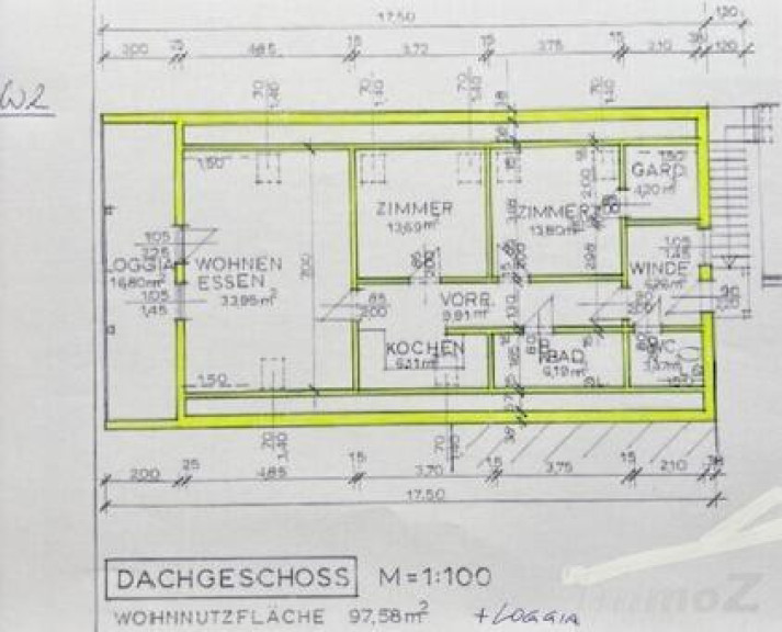 W2 – gemütliche Dachgeschosswohnung mit ca. 97,58 m2 Wohnfläche + Loggia mit ca. 16,80 m2