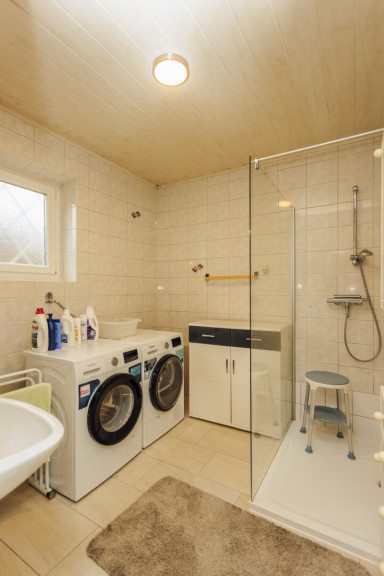 Im allgemeinen Teil (Durchfahrt – Garage und Kellerräumlichkeiten; ebenfalls ebenerdig befahr- bzw. begehbar) gibt es auch noch entsprechenden Lagerraum.
