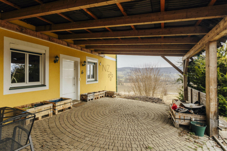 Neben der Terrasse beim Eingangsbereich gehören auch ein Carport, ein eigener Garten mit ca. 193 m2 und die riesige Veranda zum Angebot.