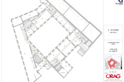 Vorraum, Herren-& Damen WC-Gruppe, mehrere Großraumbüros, die in weitere kleinere Einheiten unterteilt werden können, ein Besprechungszimmer, sowie ein Korridor mit Ausgang zu einem Fluchtstiegenhaus.
