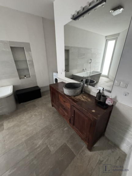 Dieses charmante zweigeschossige Apartment bietet auf zwei Ebenen etwa 120 m² Wohnfläche und eine sonnige Terrasse von 22 m² – perfekt zum Entspannen oder für Gäste. Dank des flexiblen Grundrisses verfügt die Wohnung derzeit über drei Zimmer, kann jedoch leicht auf vier Zimmer erweitert werden und bietet so zahlreiche Möglichkeiten, Ihren Lebensstil individuell zu gestalten.