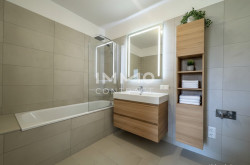 - Hochwertige Feinsteinfliesen und Markensanitäranlagen (Dornbracht, Laufen "pro")