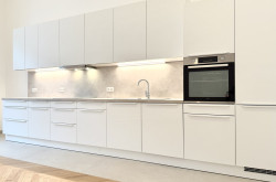 Die großzügige, voll ausgestattete Küche bietet alles, was man sich wünscht: Herd, Backrohr, Geschirrspüler, Kühlschrank mit geräumigem Tiefkühler sowie zahlreiche Ober- und Unterschränke mit viel Stauraum. Eine große Arbeitsfläche sorgt für zusätzlichen Komfort.