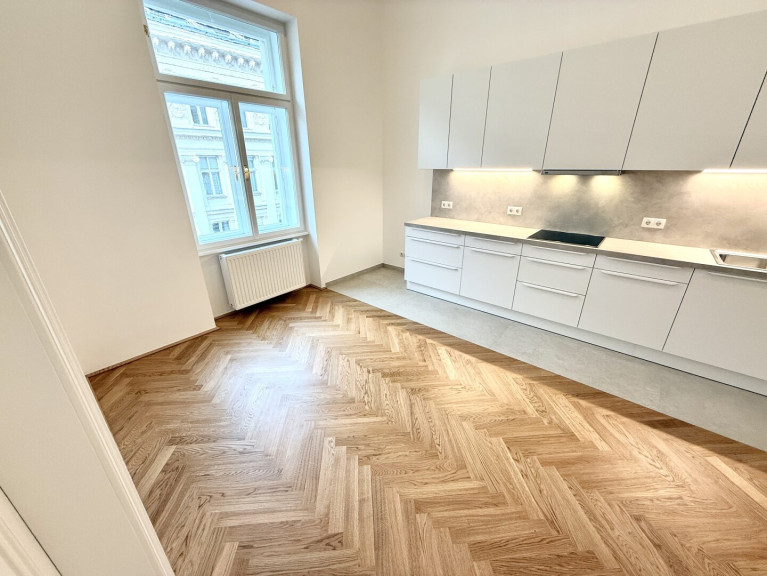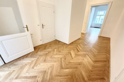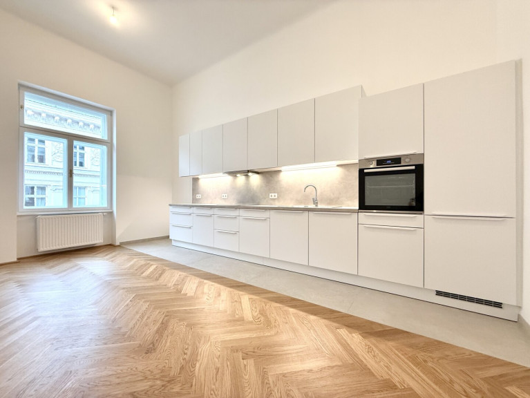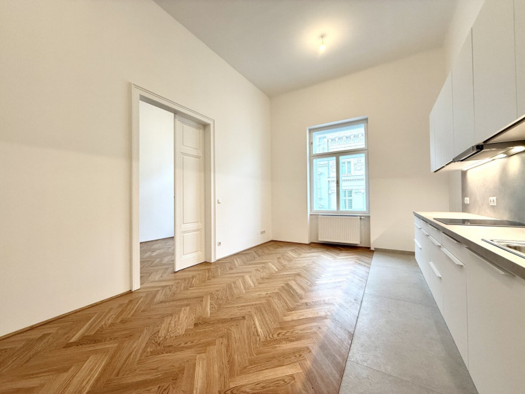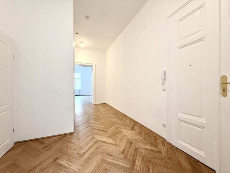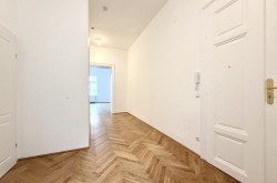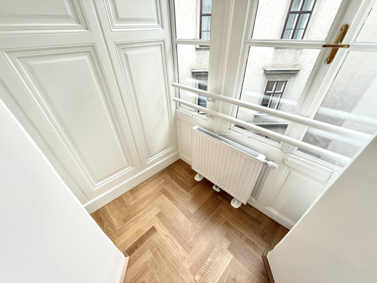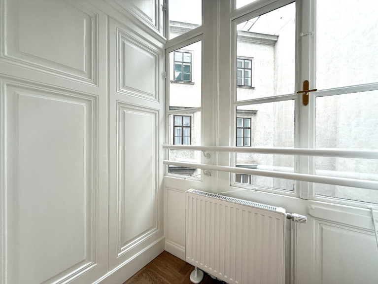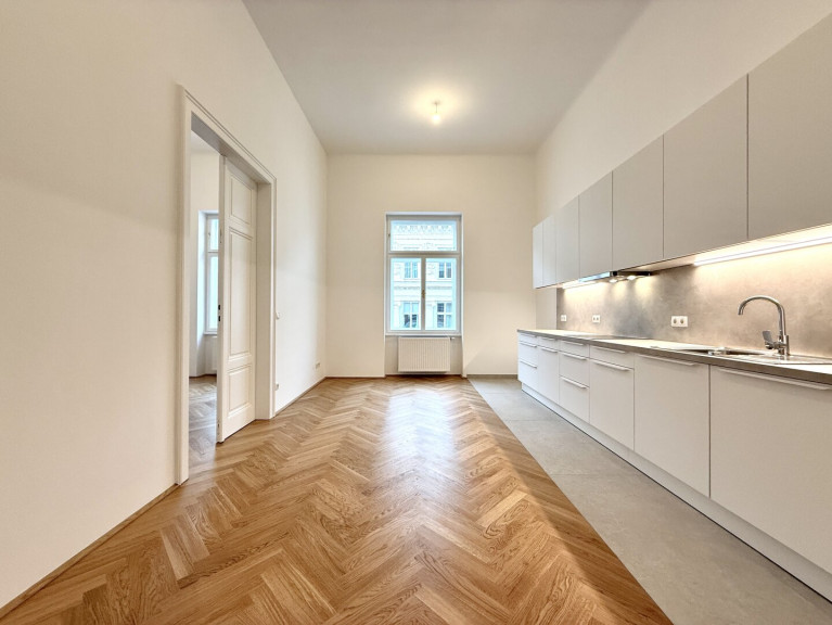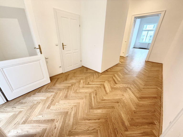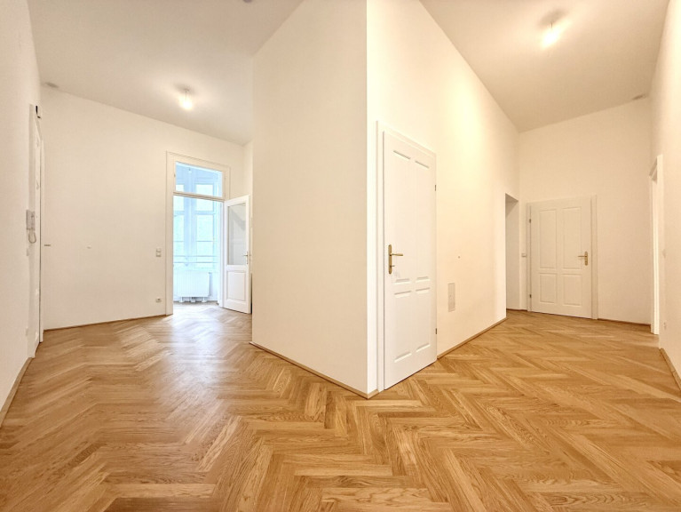 In unmittelbarer Nähe zum Parlament präsentiert sich diese außergewöhnlich hochwertige Altbauwohnung in vollständig generalsaniertem Zustand. Die Wohnung wird unbefristet vermietet und vereint klassischen Wiener Altbaucharme mit modernem Wohnkomfort auf höchstem Niveau. Bereits das großzügige Vorzimmer (22,95 m²) vermittelt ein beeindruckendes Raumgefühl und bietet vielfältige Gestaltungsmöglichkeiten. Direkt neben dem Eingangsbereich befindet sich eine Veranda, die zusätzlichen Charme verleiht. Ein praktischer Abstellraum, der sich ideal als Waschküche nutzen lässt, sorgt für wertvollen Stauraum.