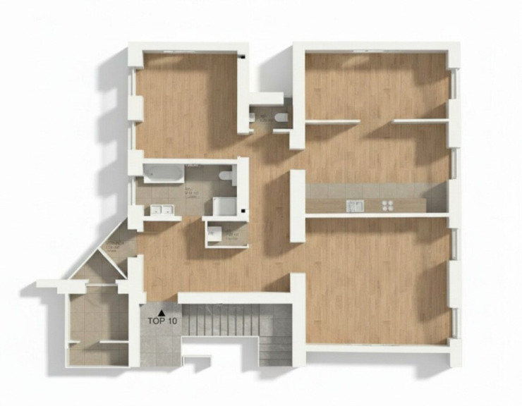 Das Herzstück der Wohnung ist das rund 32 m² große Wohnzimmer, das mit seiner Großzügigkeit und Eleganz begeistert. Die separate Küche mit Essbereich (22,01 m²) ist ebenfalls äußerst geräumig und bietet viel Platz für gesellige Abende und kulinarische Entfaltung.