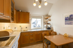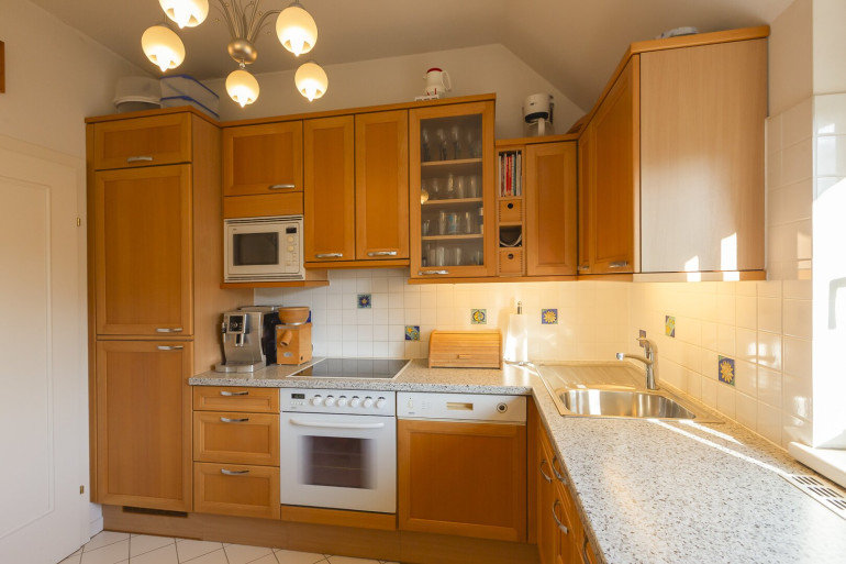 Fliesen, Parkett, Gas, Zentralheizung, Einbauküche, Bad mit Fenster, Badewanne, Dusche, Garage
