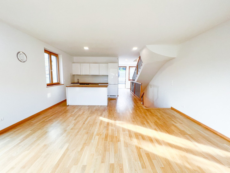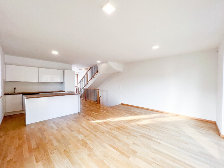 Parkett, Fliesen, Erdwärme, Fußbodenheizung, Wohnküche / offene Küche, Bad mit Fenster, Badewanne, Dusche, Parkplatz, Wasch/Trockenraum