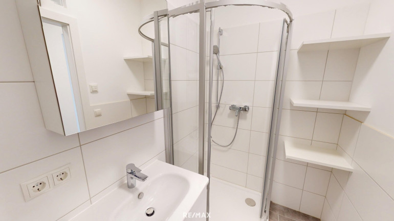 Das Bad mit Dusche und WC sind ebenfalls aus dem Vorraum aus betretbar.