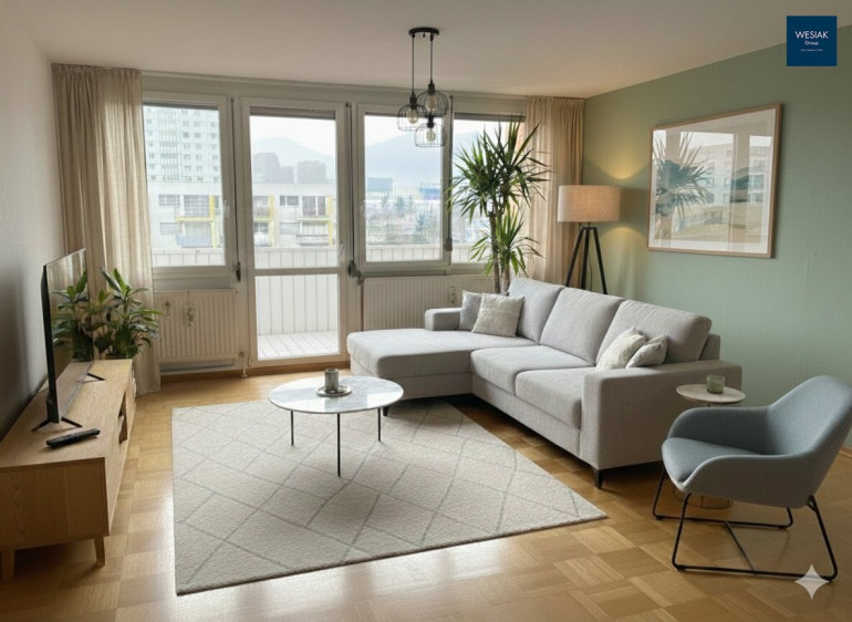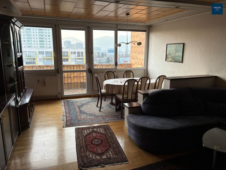 Die Raumaufteilung ist großzügig und flexibel nutzbar – ideal für ein neues Zuhause, das Sie nach Ihren Vorstellungen renovieren und gestalten können. Die Loggia lädt zu entspannten Momenten im Freien ein, während der weite Blick über die Stadt und die umliegende Landschaft ein Gefühl von Freiheit und Lebensqualität vermittelt.