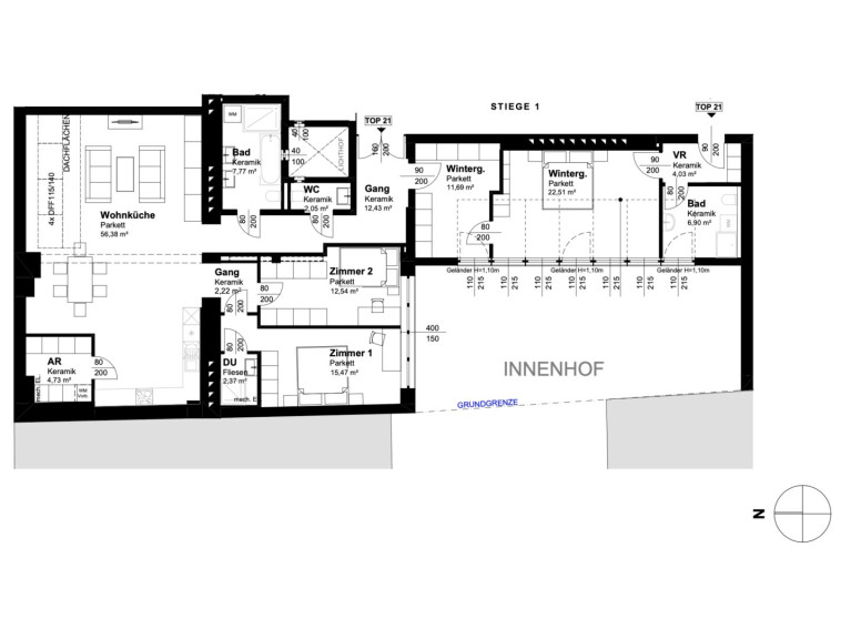Sämtliche Visualisierungen verstehen sich als Möblierungsvorschläge. Sämtliche m2 verstehen sich als ca. Angaben.