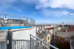 Ein weiteres Highlight ist der Pool am Dach, der allen Hausbewohnern zur Verfügung steht. Von hier eröffnet sich ein atemberaubender Rundumblick über Wien – vom ersten Sonnenstrahl bis zum goldenen Abendlicht wird jeder Moment zum Erlebnis.