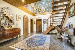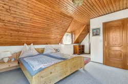 Das Obergeschoss des Hauses bietet zwei Schlafzimmer und ein Badezimmer. Das Hauptschlafzimmer ist geräumig und bietet viel Platz für ein Doppelbett und einen großen Kleiderschrank sowie Zugang auf die Dachterrasse und einen begehbaren Schrankraum. Das weitere Zimmer kann als Kinderzimmer, Gästezimmer oder Arbeitszimmer genutzt werden. Das Badezimmer ist in einem unvergänglichen beeindruckenden Stil eingerichtet und mit einer großen Eckbadewanne sowie einem WC und Bidet ausgestattet.