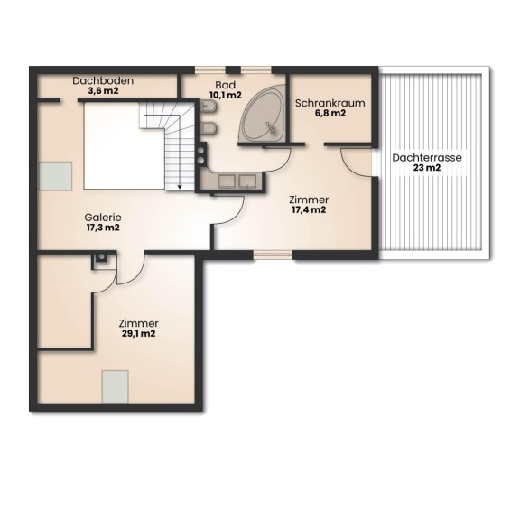 - Badezimmer mit Badewanne, WC und Bidet mit ca. 10,10 m²