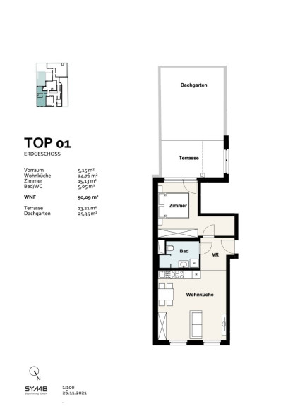 - Angrenzender Dachgarten mit 25,35 m²