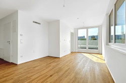 Diese kompakte 2-Zimmer Neubauwohnung befindet sich im 21. Bezirk. Vom Vorraum aus gelangen Sie in das Badezimmer, das mit einer Dusche und einem WC ausgestattet ist, sowie in den offenen Wohnbereich. Dieser überzeugt durch eine große Fensterfront und die angrenzende, über 11 m² große Terrasse, die einen idealen Ort für gemütliche Abende im Freien bietet. Die Terrasse ist sowohl von der Wohnküche als auch vom Schlafzimmer aus begehbar.