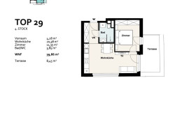 2-Zimmer Wohnung im 4. Stock | 8,45 m² Terrasse | 39,86 m² Wohnfläche