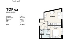 Diese 41,29 m² große Neubauwohnung zeichnet sich durch einen intelligent gestalteten Grundriss aus. Alle Räume sind zentral vom Vorraum aus zugänglich, darunter die Wohnküche, das Schlafzimmer, das separate WC und das Badezimmer. Das Badezimmer ist modern ausgestattet und verfügt über eine Dusche sowie einen Waschmaschinenanschluss. Der großzügige Wohn- und Essbereich mit über 18 m² bietet reichlich Platz für individuelle Gestaltungsmöglichkeiten und ein komfortables Wohnen.