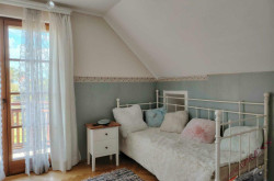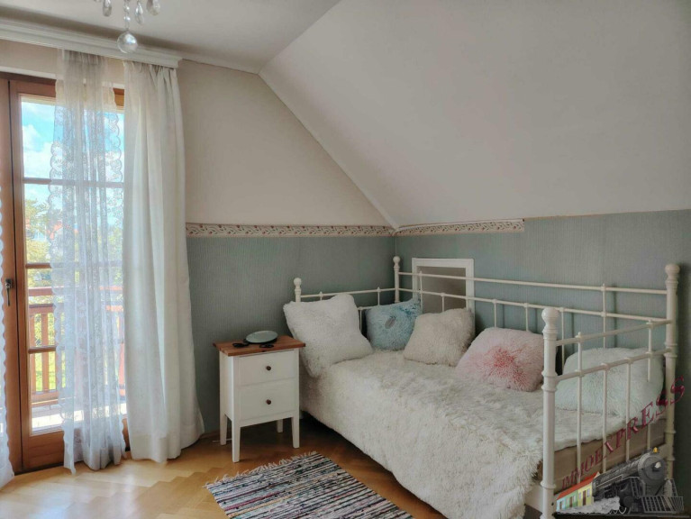 Im Obergeschoß (4 Zimmer) befinden sich 2 Balkone (süd, west-Ausrichtung), von welchen man einen schönen Ausblick in den Garten und die grüne Umgebung genießen kann. Das Haus wird den ganzen Tag rundum von der Sonne beschienen.