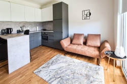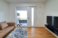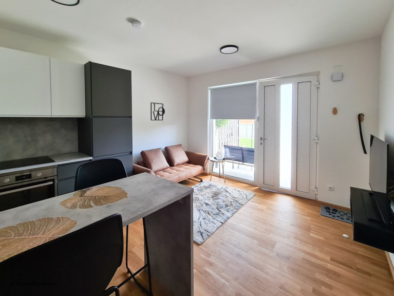 Das Apartment zeichnet sich durch ein gemütliches und einladendes Ambiente sowie eine durchdachte Raumaufteilung aus. Vom geräumigen Wohnzimmer mit Blick auf den eigenen Garten gelangt man über den Flur in ein modernes Badezimmer mit Dusche und WC. Das Schlafzimmer befindet sich am Ende des Flurs.
