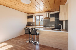 - Erdgechoss: Windfang, Vorraum mit Stiege ins Obergeschoss, Ess- Küche mit Speis und Technikraum, Schlafzimmer, Wohnzimmer, Badezimmer mit WC.