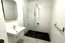 - Feinsteinzeugfliesen in den Nass- und Abstellräumen