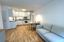 Die Wohnung war kurzzeitig bewohnt und würde inkl. der abgebildeten Möblierung übergeben werden. Die Ablöse für das auf den Fotos abgebildete Mobiliar inkl. Küche beträgt EUR 2.000,-.