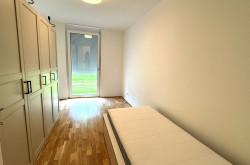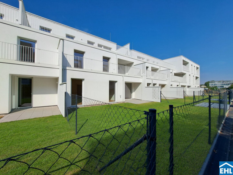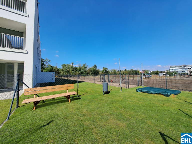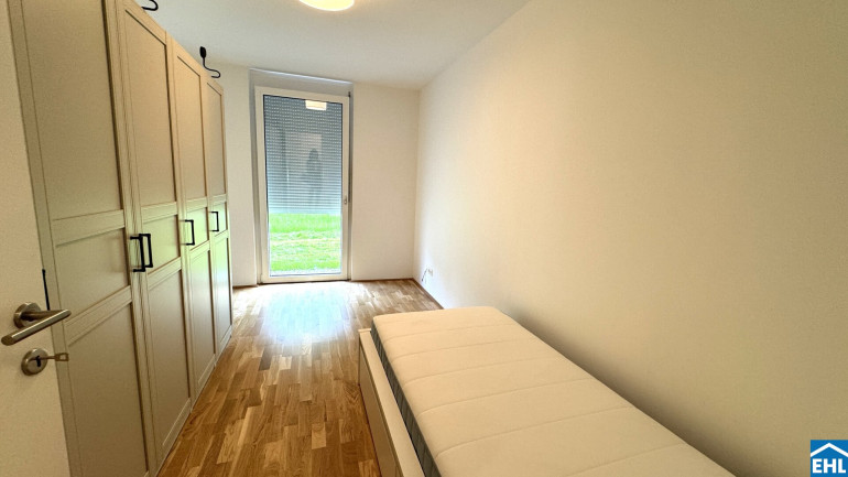 Die 3 Zimmerwohnung ist westseitig in Richtung eines wunderschönen Grüngürtels ausgerichtet und somit absolut ruhig gelegen. Sowohl von der Wohnküche, als auch von den beiden Schlafzimmern aus, gelangt man direkt in den Eigengarten, der weiters über eine teilweise überdachte Terrasse verfügt.