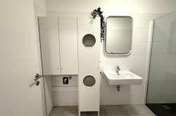 - Feinsteinzeugfliesen in den Nass- und Abstellräumen