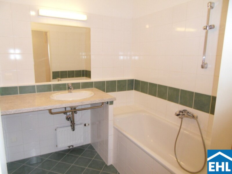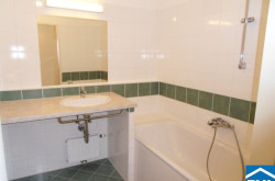 - Badezimmer mit Badewanne, WC und Waschmaschinenanschluss