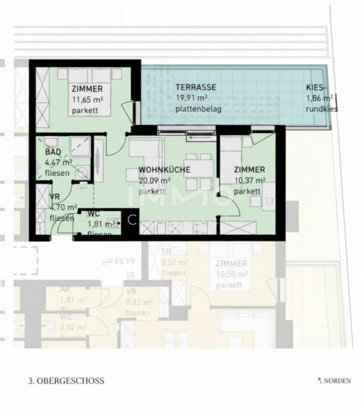 - Jede Wohnung mit privater Freifläche (Loggia, Balkon, Terrasse, Eigengarten)