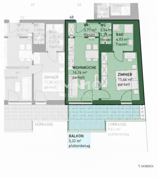 - Jede Wohnung mit privater Freifläche (Loggia, Balkon, Terrasse, Eigengarten)
