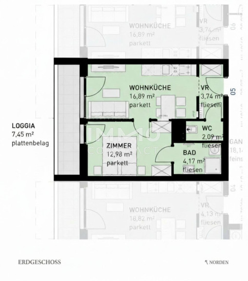 - Jede Wohnung mit privater Freifläche (Loggia, Balkon, Terrasse, Eigengarten)