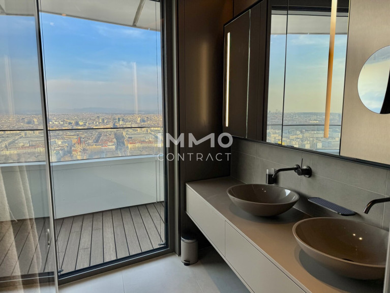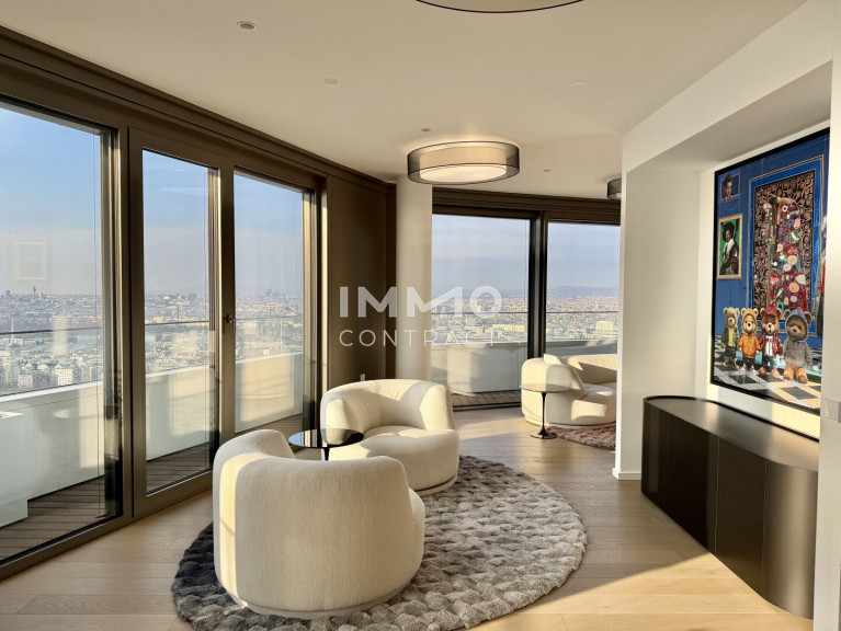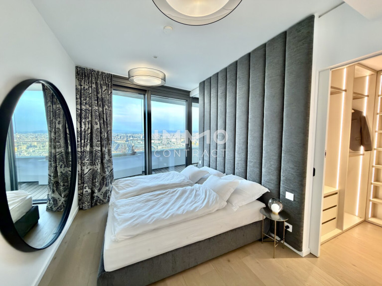 This exclusive apartment is located in Danubeflats, one of Vienna’s most prestigious residential buildings and Austria’s tallest residential tower. Floor-to-ceiling windows, modern architecture and premium finishes create a unique living experience high above the city. Residents enjoy spectacular views over Vienna as well as outstanding amenities within the building. These include an exclusive wellness area with swimming pool, a fully equipped fitness center, as well as a restaurant and bar that perfectly complement the luxurious lifestyle of this extraordinary residence. A rare opportunity for those seeking premium living at one of Vienna’s most exclusive addresses.