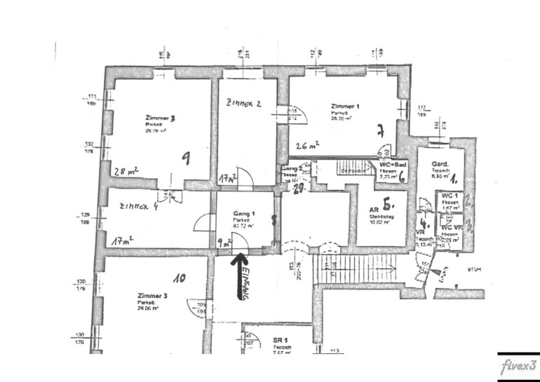 Zu mieten ist ein Teil des ersten Obergeschoßes mit 4 Räumen (ca. 28, 26, 17 und 17m²), ein Vorraum mit rund 9m² und WC 2m²; es stehen hier weitere Räumlichkeiten zur Verfügung und ist die Fläche noch variabel wählbar!