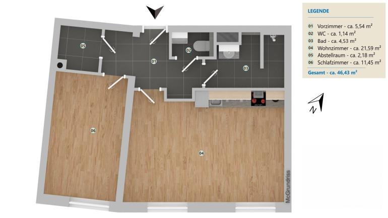 | Wohnfläche: | 46,43 m² |