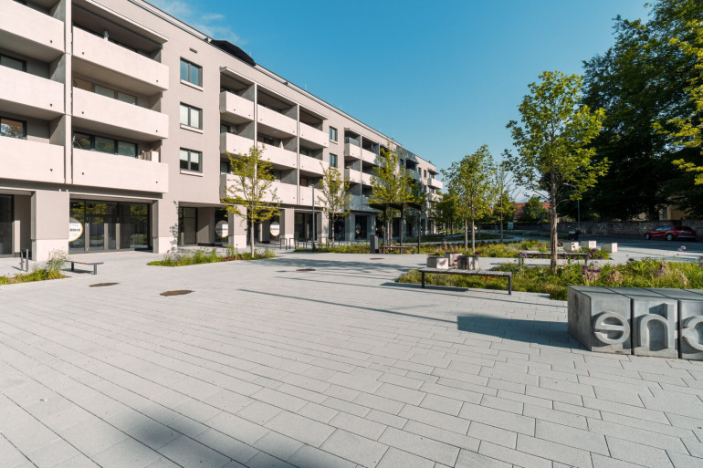 Diese – in einem Neubauprojekt – entstandenen Geschäftsflächen heben sich sowohl durch die gute Erreichbarkeit als auch die frequentierte Lage in unmittelbarer Innenstädtnähe hervor. Ausreichend Schaufensterflächen hin zum begrünten Vorplatz können optimal für Werbemaßnahmen und Präsentationen genutzt werden. Die bauliche Ausführung im Erdgeschoss in Form von Arkaden lies eine kleine Geschäftsmeile“ entstehen, die durch einen Supermarkt sowie einen Gastronomiebetrieb zusätzliche Frequenz erhält.