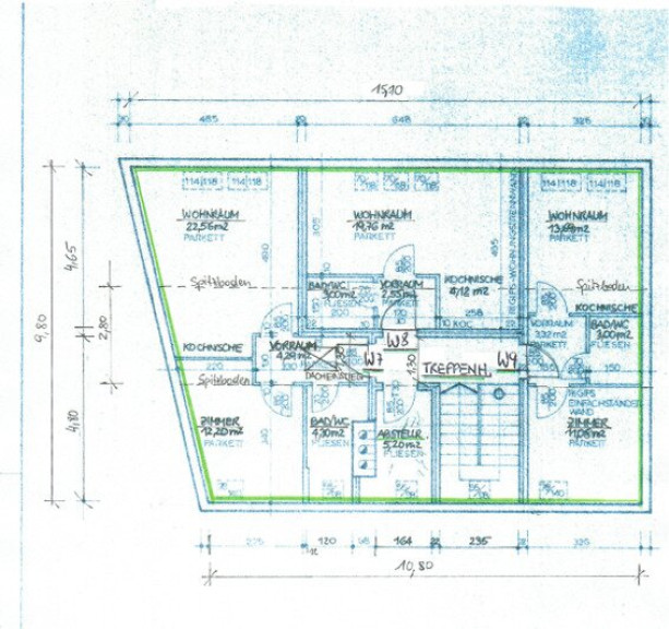 rd. 452 m² Gesamtwohnnutzfläche (anteilig zum Verkauf stehende Fläche ~ 76 % der Liegenschaft nach WE-Anteilen)