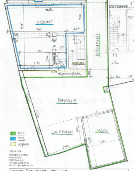 Außenfläche: 1 PKW-Stellplatz, Hoffläche, Durchfahrt zur Hoffläche, Lagerplatz überdacht