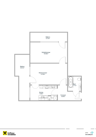 Der einladende Vorraum mit Garderobenbereich bietet ausreichend Stauraum und erschließt die Wohnung. Das Schlafzimmer verfügt über Platz für einen Einbauschrank und direkten Zugang zum zweiten Balkon, auf dem die Abendsonne genossen werden kann. Das Badezimmer ist modern ausgestattet und verfügt über eine Badewanne. Die Küche ist teils abgetrennt und dennoch offen zum Wohnbereich gestaltet, der durch seine großzügigen Fensterflächen viel Tageslicht bietet. Der große, überdachte Südbalkon lädt zum Verweilen an sonnigen Tagen ein und bietet einen traumhaften Ausblick.