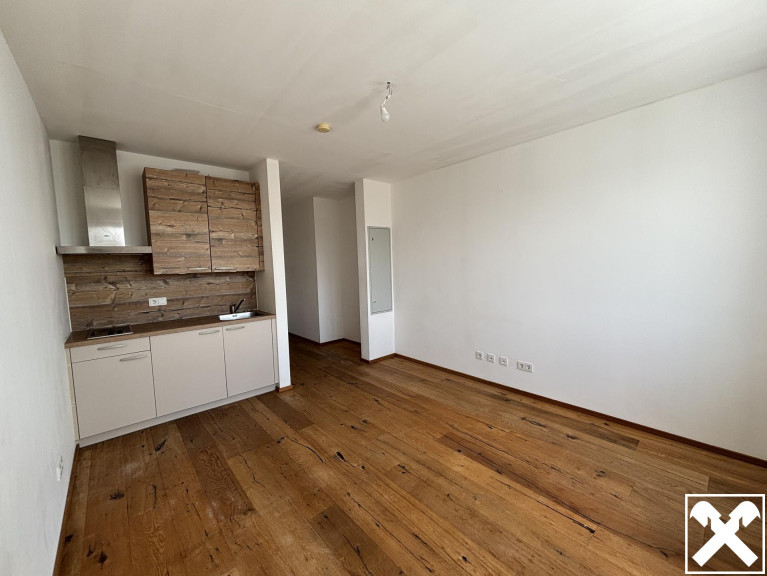 ca 23,06 m2: ein kompakter Raum (Parkettboden) mit Kochnische und Vorraum und Badzimmer.
