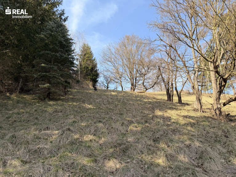 Das Grundstück ist straßenseitig eben und steigt anschließend sanft an. Dahinter erstreckt sich ein größeres, als Landwirtschaft gewidmetes Grundstück mit Obstbaumbestand, das zunächst steiler verläuft und später abflacht – ein reizvoller Grünblick inklusive.