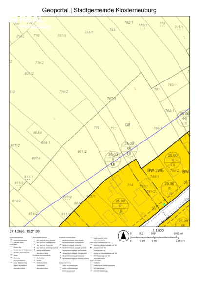 Ein Vorgarten schafft Abstand zur Straße, Hecken sorgen für Sichtschutz zu den Nachbargrundstücken. Besonders attraktiv: Das angrenzende Grundstück auf Klosterneuburger Seite ist unbebaut (Wiese) – ein Plus an Offenheit und Privatsphäre.