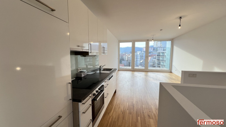 diese besondere 3-Zimmer-Maisonettewohnung überzeugt durch eine moderne Raumaufteilung auf zwei Ebenen, großzügige Wohnbereiche und eine attraktive Loggia, die zusätzlichen Freiraum im Freien bietet. Die Wohnung verbindet stilvolles Wohnen mit einer offenen und zugleich funktionalen Gestaltung – ideal für Paare, Familien oder Menschen mit Homeoffice-Bedarf.