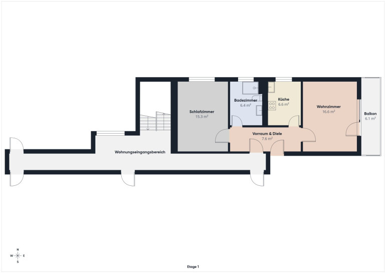 Die Wohnung eignet sich ideal für Einzelpersonen oder Paare, die eine gepflegte Etagenwohnung in ruhiger und dennoch gut angebundener Lage suchen.