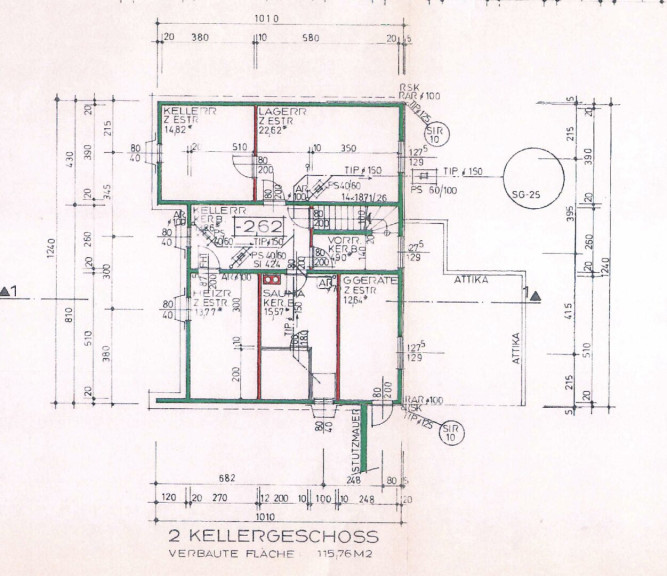 Das zweite Kellergeschoss kann als Wohnkeller adaptiert werden und ist wie folgt aufgeteilt: