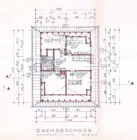 Das Dachgeschoss des Hauses verfügt über eine Wohnfläche von 61,91 m2 und besteht aus: