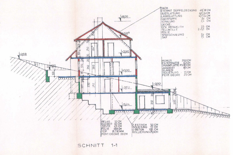 Das Haus gliedert sich in Kellergeschoss, Erdgeschoss und Obergeschoss und Dachgeschoss.