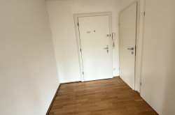 Wohnungseingangstüre: Vollbautürblatt (WKl 2) beidseitig weiß lackiert, Zylinderschloss mit massivem Türbeschlag und Türspion.