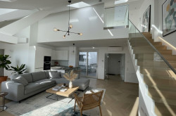 Die architektonische Raffinesse dieser Wohnung erstreckt sich auch im oberen Bereich, wo ein Studio/Galerie, mit eigenem Zugang von Außen, für zusätzlichen Raum sorgt.